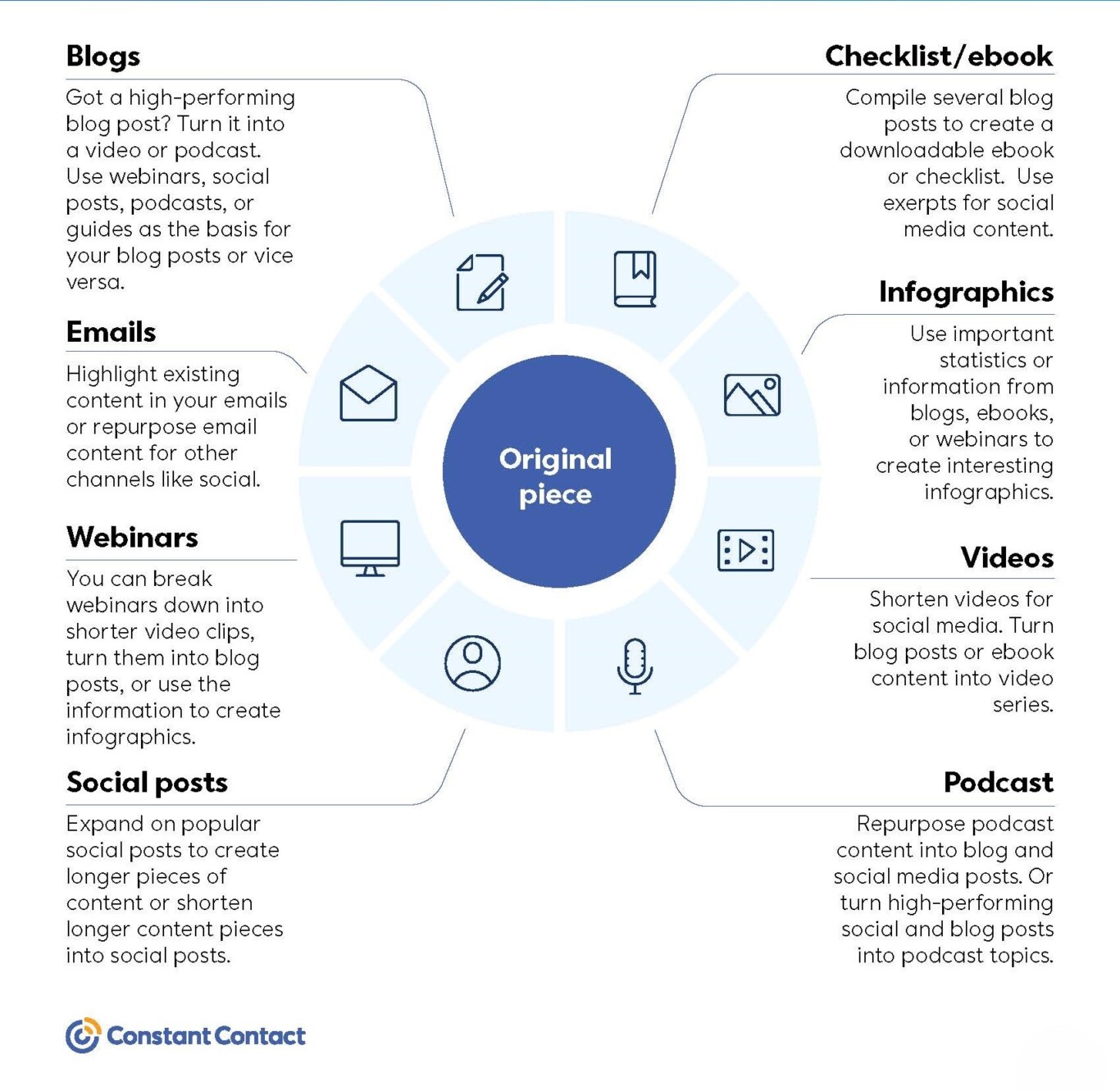 It can seem time- and budget-intensive to create enough content to populate your website, email, social media, and more. But one piece of content can be turned into many in order to get the most out of your efforts, saving time and money.