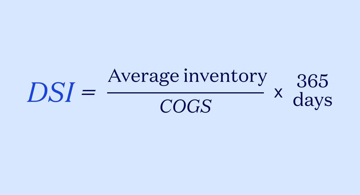To help forecast cash flow—i.e., how much of your funds are wrapped up in inventory—use the days sales of inventory (DSI) formula to find the average number of days it’s taking you to turn your inventory into sales. A low DSI indicates that you’re keeping a lean inventory by selling quickly, while a high DSI may mean that you’re spending too much on inventory or that you’ve simply stocked up extra.